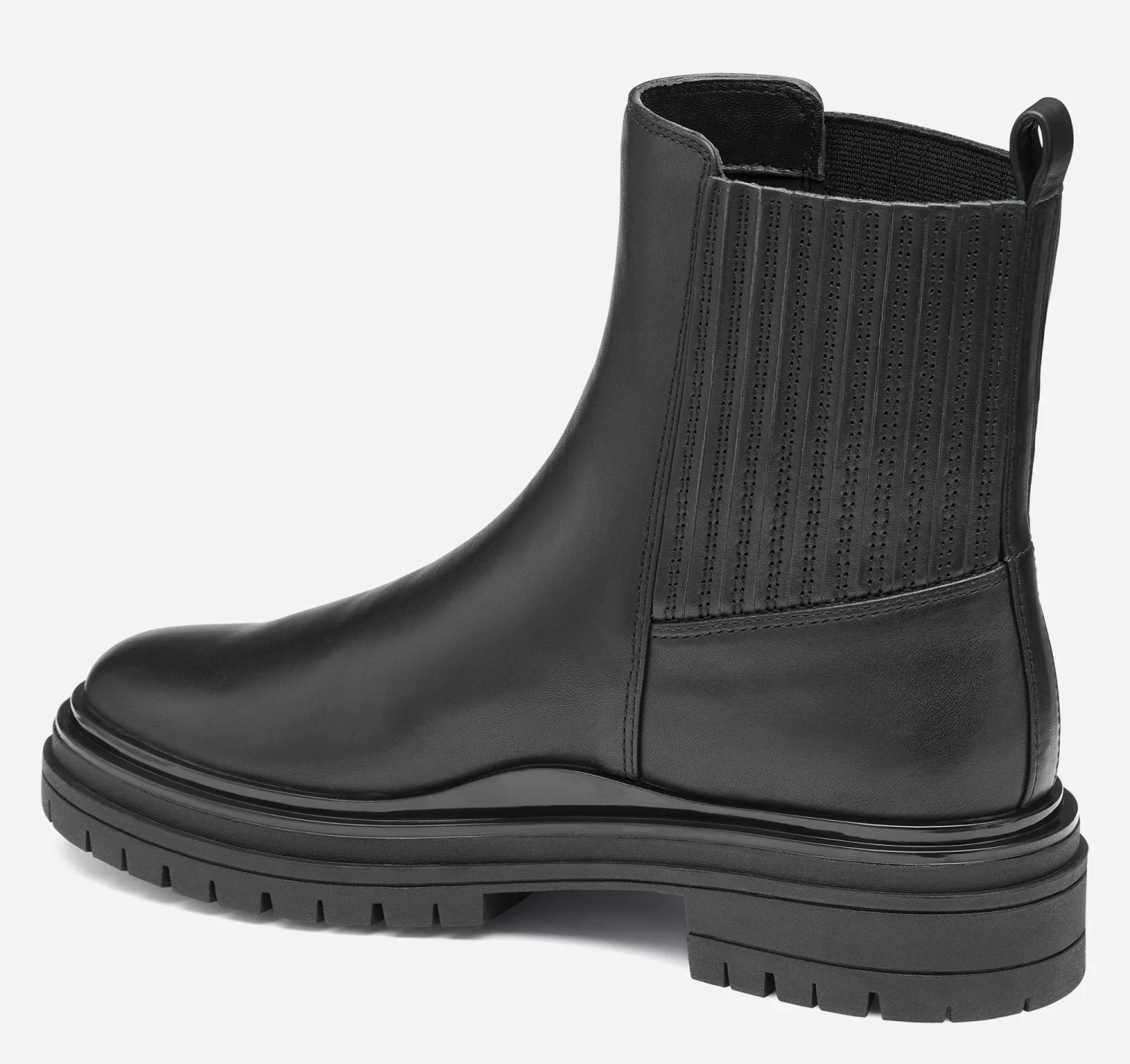 - Ribbed stretch gore all around for pull-on-and-off ease.