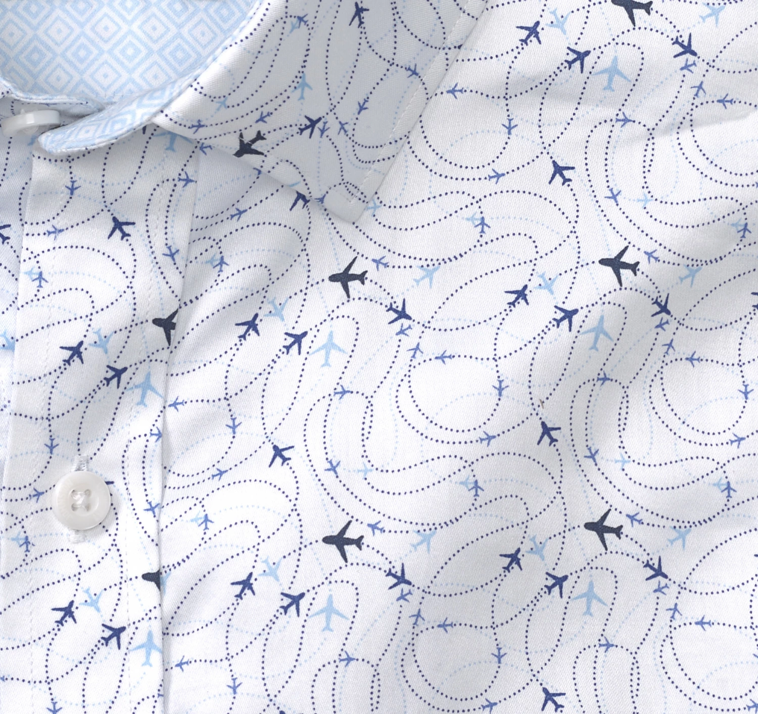 - Point collar with hidden buttons for stay-in-place smoothness.