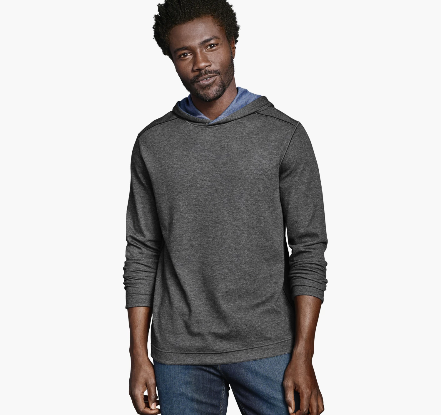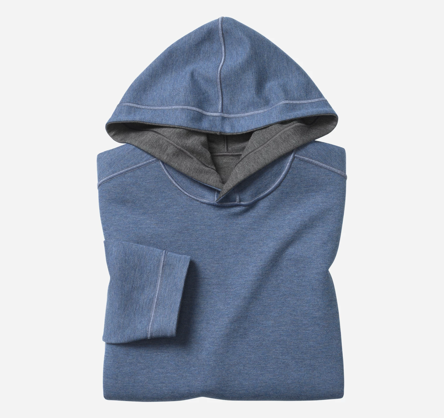 - Soft, lightweight double-faced knit reverses to contrast heathered shade.