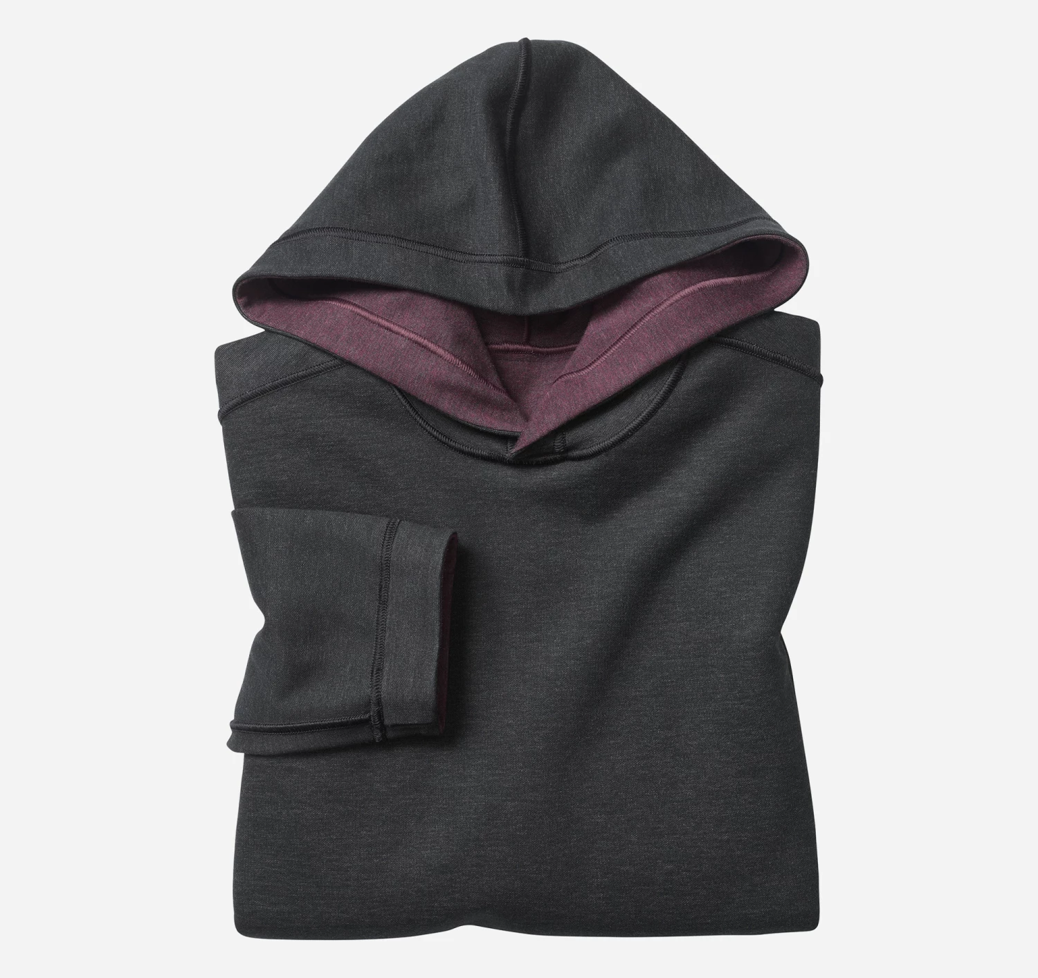 - Soft, lightweight double-faced knit reverses to contrast heathered shade.