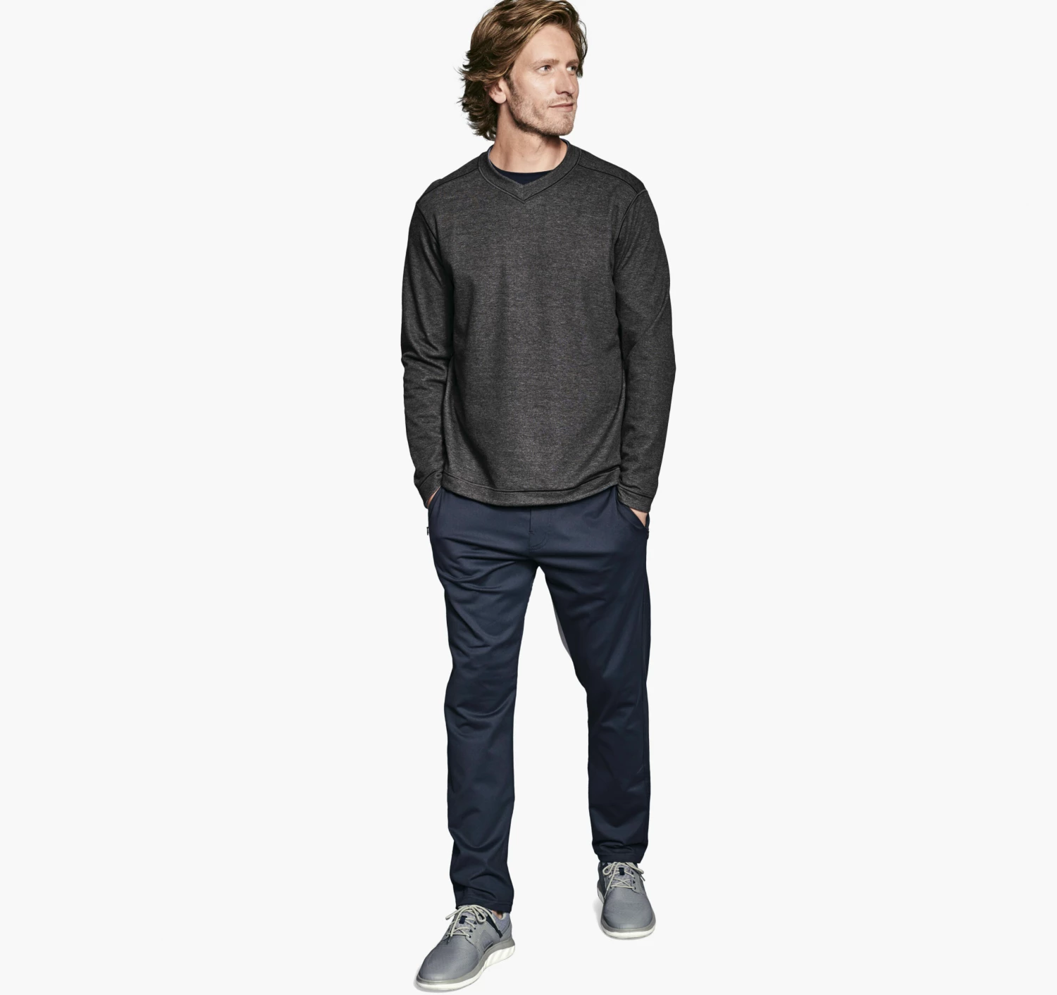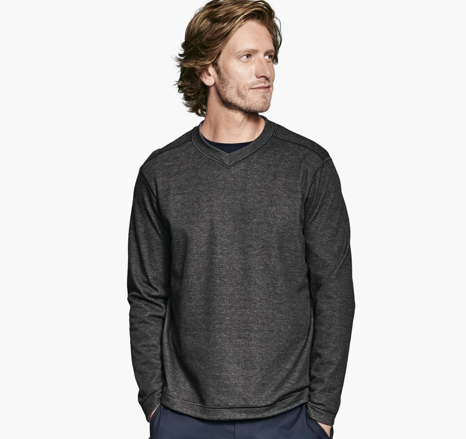 - Soft, lightweight double-faced knit reverses to contrast heathered shade.