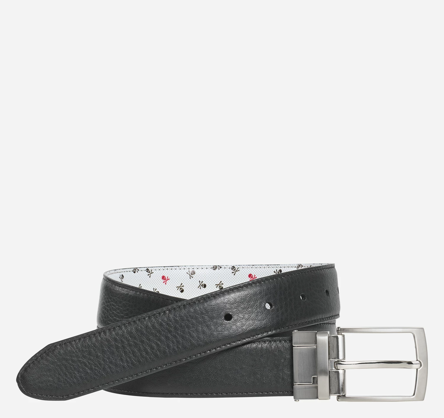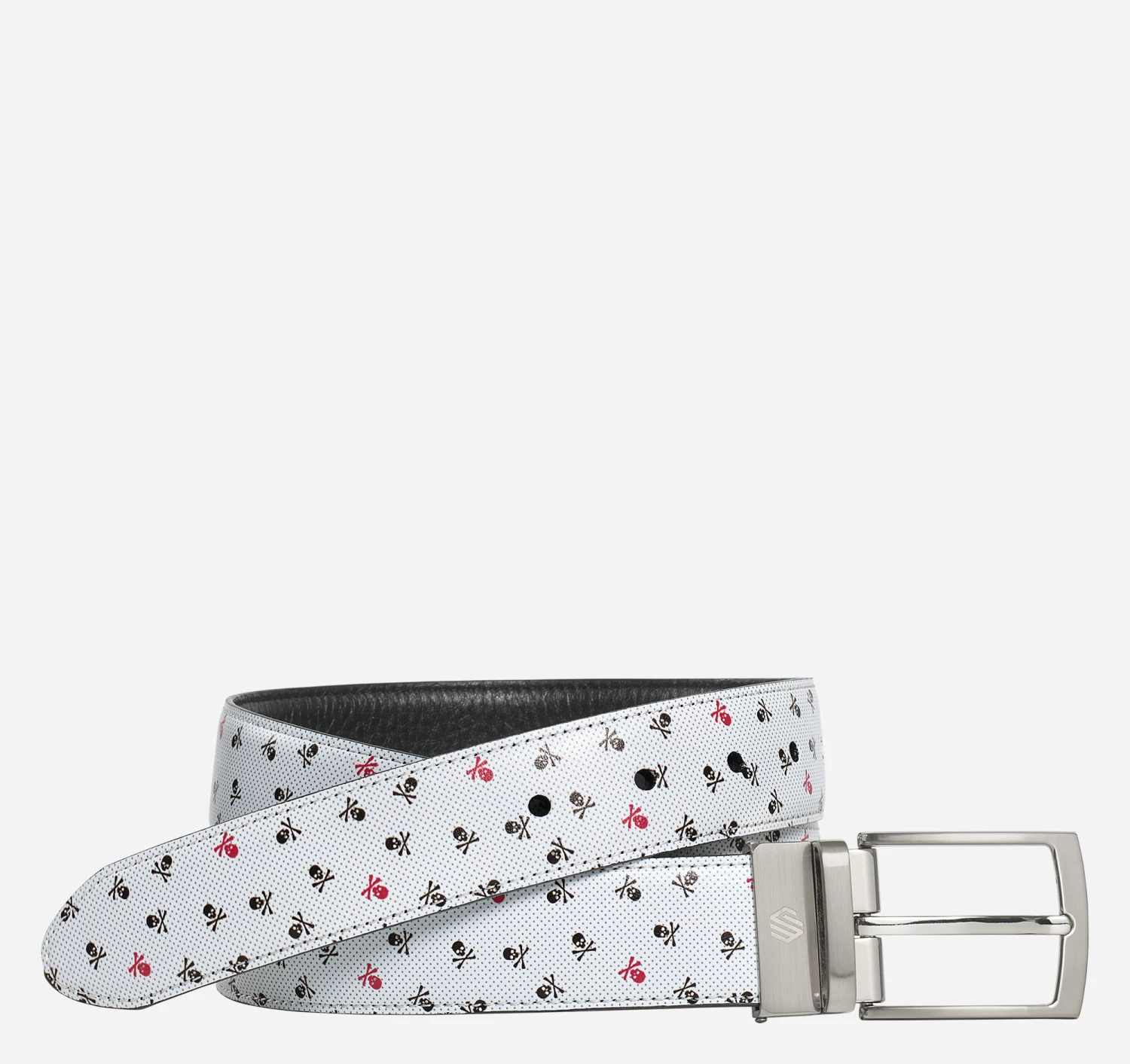 - Brushed nickel buckle with etched logo.