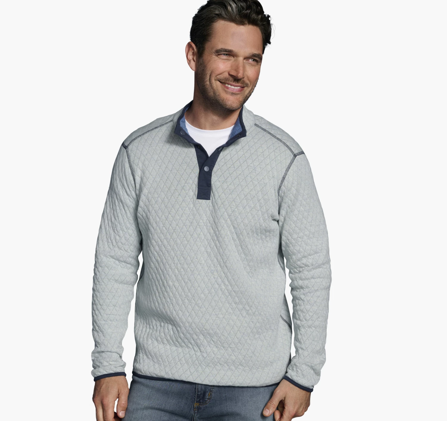 - Soft, double-faced quilted knit reverses to contrast shade for two looks in one.