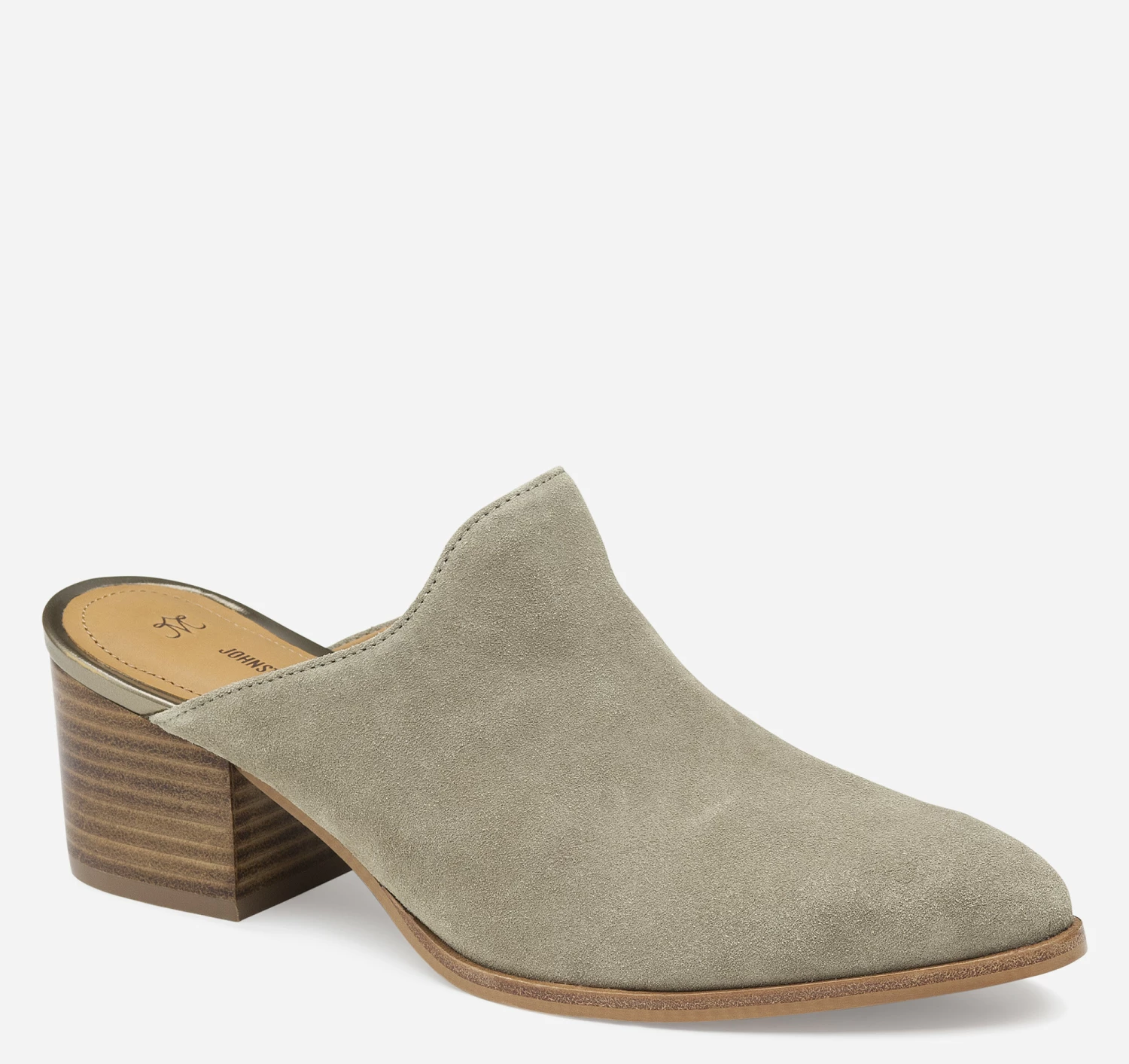 - Chic and comfy block-heel slip-on combines clean lines with custom leopard-print haircalf or the softest Italian leather and suede.
