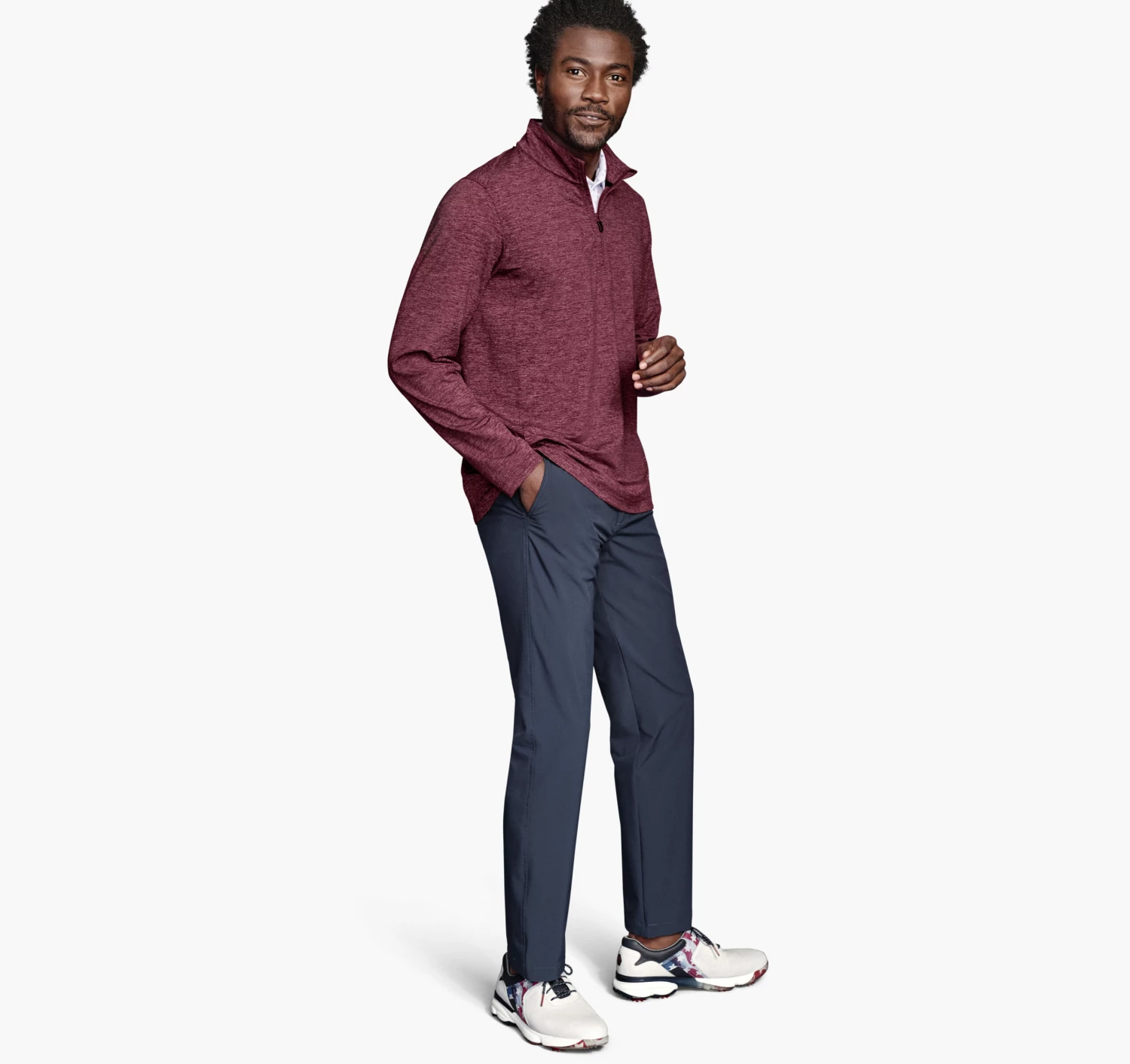 - Quarter-zip placket.