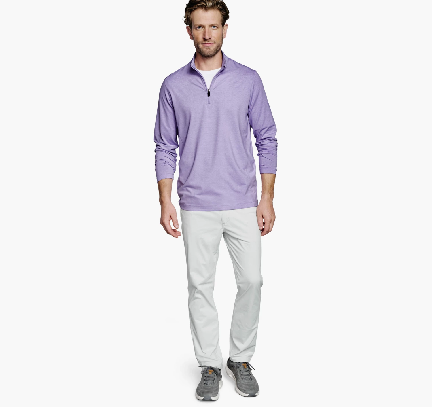 - Quarter-zip placket.