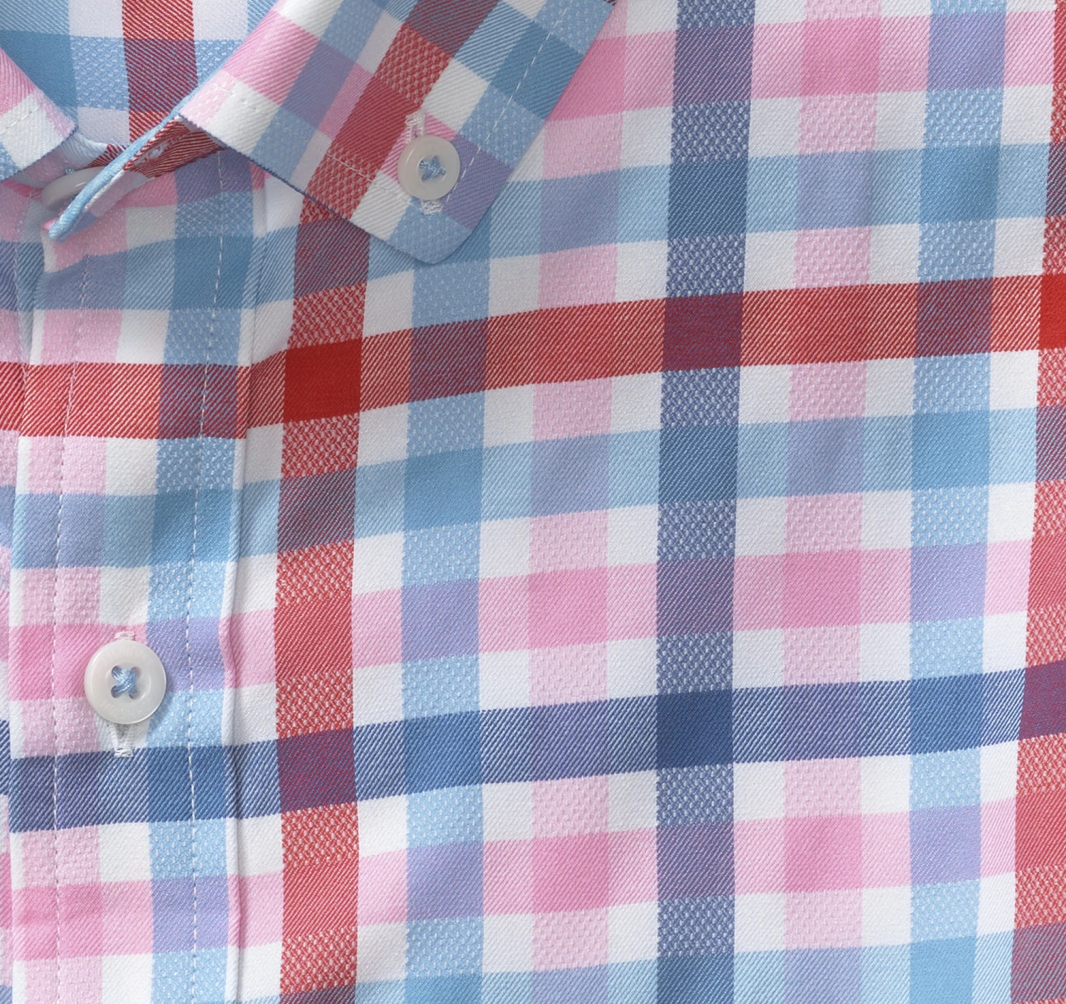 - Bright and breezy checks in fabric that resists wrinkles and dries in a flash.